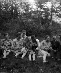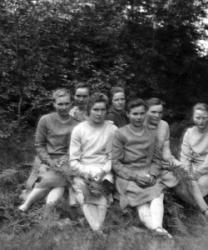 vasem. 1. Väinö Harju, 2. ?, 3. ?, 4. Artturi Autio, 5. Irja Holkko, 6. ?, 7. Saima Uusitalo, 8. Reino Hauskamaa