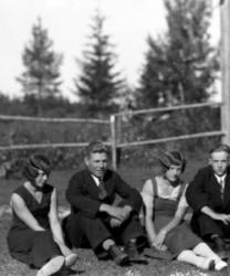 Kalle ja Elli Paavola, Liisa ja Anni Herrala, Hilma Ojala, Arvo Aho, Helmi Kanerva Sinkka, emäntä Suomela ja Kyllikki