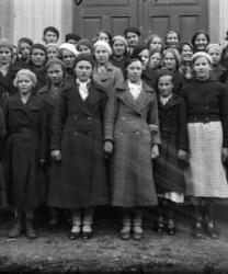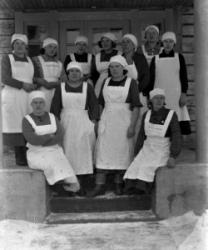 Keittokurssit Heikkolassa Hakojärvellä. vas. edessä Aune Tyrni, Aili Mäkinen, Ida Saarimäki, Helmi Heikkola, takana vas. Kerttu Peurala, Alli Autio, Aune Kallioniemi, Sylvi Jokilehto, Esteri Koivisto, Aino Jokinen ja Mirjam Lamminaho