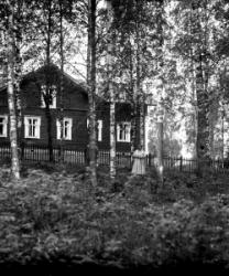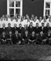 Rippilapsia kuvattu pappilan entisen renkituvan, myöh. seurakuntatalon päädyssä. Taustalla näkyy Töysän kirkko. Kirkkoon johti seurakuntatalolta koivukuja. Rippilapset lähtivät rippipäivänä seurakuntalolta kävelemään koivukujaa pitkin kirkkoon.