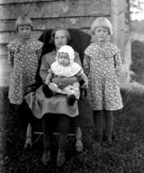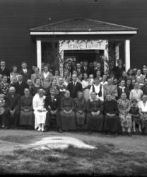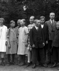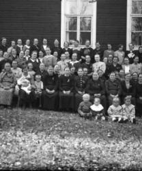 Edessä vas. Leo Rasi myöh. Rintala, Mirja Rasi myöh. Mäkelä, Keijo Rasi, Veikko Arimo ja Kauko Hirvi, Ahti Rasi, Unto Onnela, Toinen rivi vas. Maria Onnela, Anna Rasi os. Reland, Juho Kustaa Rasi, Iida Johanna Myllymäki os. vähämaa, Anni Rajala os. Nakkari. Tak. Enni Rasi sylissä Hilda Rasi, Matti Rasi, Erkki Onnela, Matti Rajala, Matin edessä Helvi ja Irja Onnela, Alli Hirvi os. Rasi ja Jussi Hirvi. Takana oik. Väinö Harju, Johannes Nikodemuksen poika Myllymäki