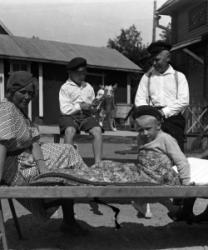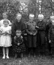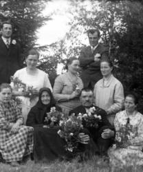 Edessä keskellä vanhapari Aleksanteri Katajamäki (ent. Hakojärvi) ja puoliso Vilhelmiina Katajamäki. Pojat Vihtori ja Aleksanteri. Tyttäret Vilhelmiina, Lyydia, Ida, Maria, Eeva