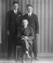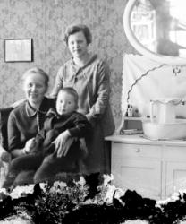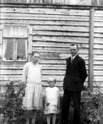 Aino Maria (os. Katajamäki) ja Matti Einari Saarinen, heidän vanhin lapsensa Mirjam Kaarina (myöh. Etelä-aho) Kuva otettu Oskari Saarisen talon takana, Tuuri