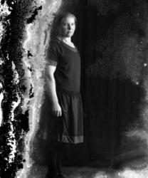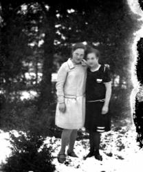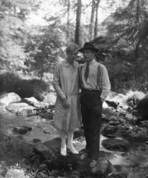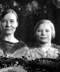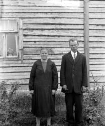 Mimmi (os. Saarikoski) ja Oskari Saarinen. Kuva otettu Oskari ja Mimmi Saarisen talon takana Tuurissa.