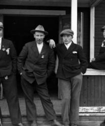 vas. Eino Lamminaho, Matti Heikkola, Eino Myllyaho ja Usko Mäkiranta, kuva otettu Hakojärvellä raittiusyhdistyksen talolla