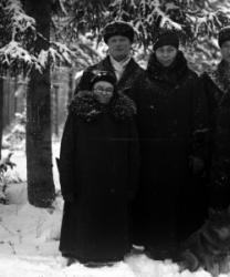 Vasemmalta: Silva Hirvelä (myöh. Multamäki), Olavi Holkko, Paavo Uusitalo, Saima Hirvelä (myöh. Rantala)