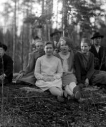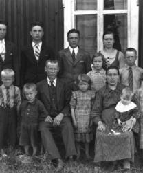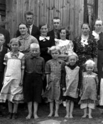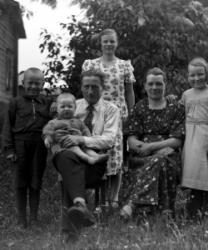 Matti ja Helmi (os. Vuorisalmi) Saarimäen perhe. Vas. Erkki, Juhani, Matti, nainen ei tunnistettu, Helmi ja Eila.