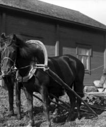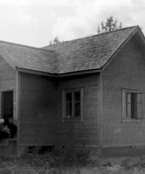 Nainen keskellä musta puku valkonen rusetti Kerttu Väliaho os. Jokela ja mies hänen vasemmalla puolella takana Kalle Väliaho.