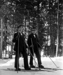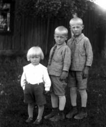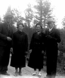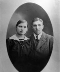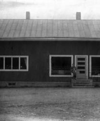 Vasemmalla taustalla olevaa henkilöä ei ole tunnistettu. Kuva otettu Yhtiön pihassa syksyllä 1913. Kuva on mahdollisesti Heikki ja Lyydi Peuralan lapsen, Kainon kastetilaisuudesta.