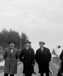 Tuurilaisia miehiä radalla Kruununsillan kohdalla Tuurissa. Vasemmalla vahtitupa, joka Tuurista noin 3 km. Töysään päin.