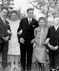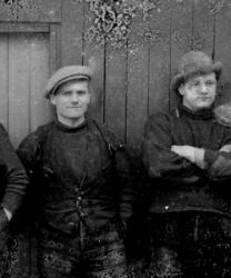 Eino Heinämäki, Eino Lamminaho, Eino Niemelä, Kalle Peltoniemi, Väinö Salmenaho. Suutari Oskari Virtasen työmiehiä.
