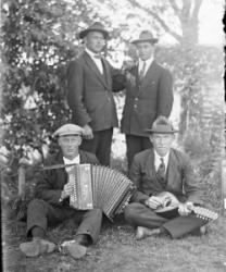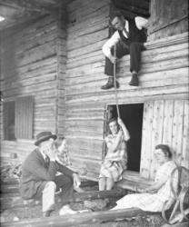 Matti ja Lyyli Saarimäki, kesk. Hilma Ekola, Helmi Saarimäki oik. (Matin vaimo), ylhäällä Erkki Saarimäki, s. 1905.