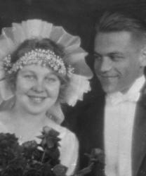 Vihitty 14.4.1935, vihki kirkkoherra Väinö Tuomola, istuu morsiamen vanhempien vieressä. Morsiamen oikealla puolella Nestori ja Lyydia Hautala, sulhasen vasemmalla puolella Elias ja Hilja Kukkola. Töysän kirkonkylä