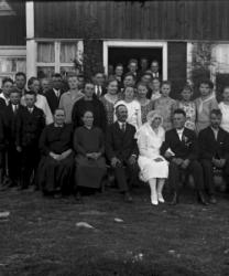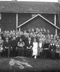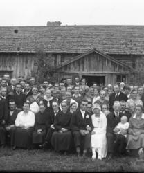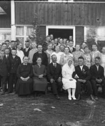 Hääpari Juho Lehtomäki ja Maria Kaunisharju. Hääpäivä 30.8.1930. Sulhasen vieressä Juha ja Sanna-Liisa Kaunisharju. Nestori ja Hilda Kosola, Kaisa ja Heikki Lehtomäki, Elli ja Vihtori Laasasenaho, Vieno, Elmi ja Matti Kaunisharju, Fanni Luoma s. Lehtomäki, Hilma Kilkanen s. Lehtomäki, Taimi, Reino Kosola, Viljo Rantala, Lilja Lampila, Sulo Kaunisharju, Sulo Myllymäki, Elli Heikkilä.