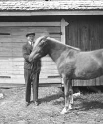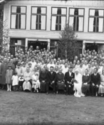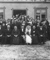 "Väinö Alasalmen ja Elma Rannanjärven häät, kuvattu Rannanjärven talon edessä. Vihitty 6.8.1932.