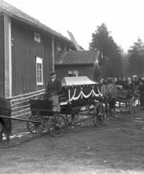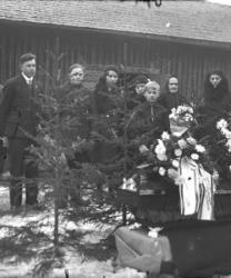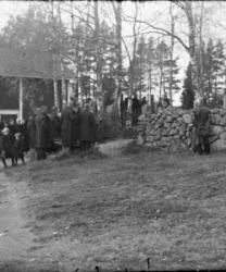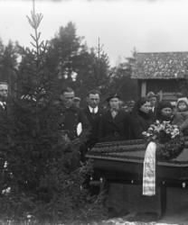 Oikealla Maria Mantero-Juppo, takana Matti Joensuu?, Ylä-Hakomäki pojat, Jenny, Kerttu, Emäntä, isäntä Juho Ylä-Hakomäen hautajaiset.