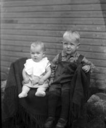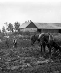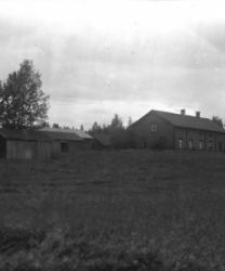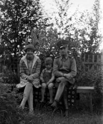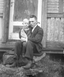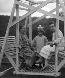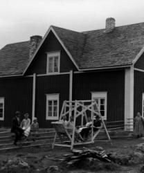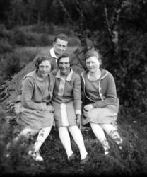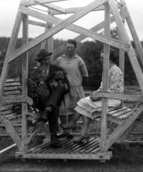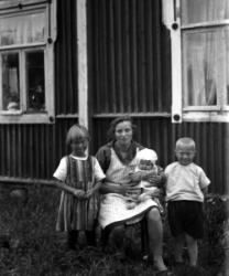Lanttolan talo, oikealla Hilma ja Heikki Lanttola. Aidalla istuu Hilma Ekola, Saima Lanttola (myöh. Katajamäki) ja Väinö Lanttola.