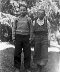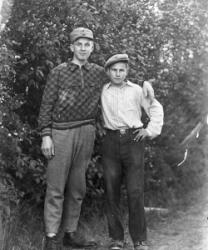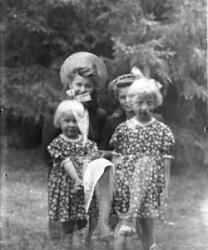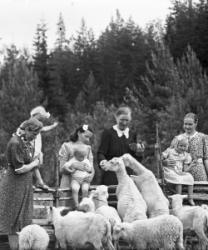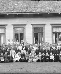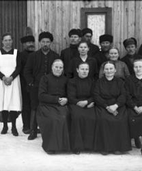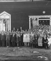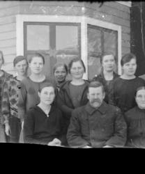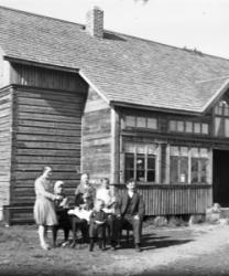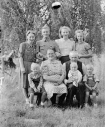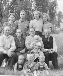 Takana vas. Aune ja Veikko Sarrivaara, Kerttu Ruuhela (myöh. Yli-Mutka), Vieno Hopea. Istumassa Rikhard ja Fanny Haaparanta, Hilma ja Konsta Hiipakka, Hilman sylissä Raimo Erkkilä. Edessä Jorma Haaparanta ja Saarnivaaran lapset, pojan nimi Kyrö