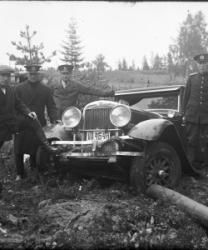 "Kuvassa poliisit ovat pysäyttäneet pirtulastin sisältävän Hudson auton piikkimatolla tienpenkkaan.