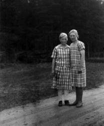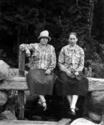 Sisarukset Lyydia Karsson os. Vanhamäki ja Hilma Vanhamäki. Hakojärvi. Lyydia Karsson asui vähän aikaan Usassa, jossa avioitui, mies kuoli ja Lyydia palasi takaisin kotiseudulleen.Kuva otettu Jouttilammen padolla