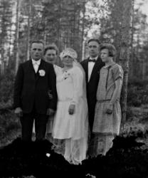 Vas. edestä Impi (os. Rankila) ja Artturi Mäkiranta, Senja Mäkiranta, vas. takana Juho K. Järvinen, Eino Myllyaho ja Juho Lamminaho