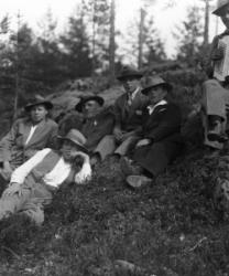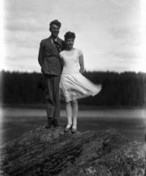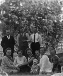 Kuivasmäen perhettä. Vas. edestä Kaisa Heikintytär Kuivasmäki (os. Viitamäki), Kerttu, Eeva Ottilia sylissä Rauha, pojat Viljo ja Unto isänsä Heikin sylissä. Takana vas. Kustaa ja Fanny Alava (os. Kuivasmäki), ?, Hilja Kuivasmäki, ?. Hakojärvi