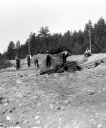 Töysän aseman topparoikkaporukka tekemässä pengerrystöitä Hoikanlammen kohdalla