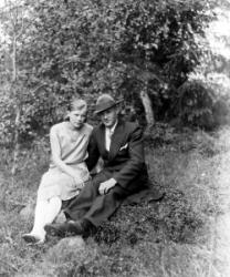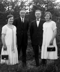 Vihitty 28.9.1919. Kustaa Haavisto s.2.1888 ja Hilda Salmi s. 19.1.1896. ja lapsia vasemmalta Else s. 6.7.1924, Eino s. 22.8.1926, Saima s. 30.12.1920