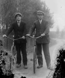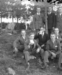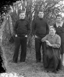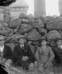 "Reino Järvinen, Kalle Riihimäki, Eino Niemi, Salomon "Salttu" Viitala", Töysän kirkon kivimuurin vieressä