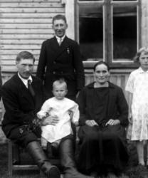 Vas. Aleksandra Holkko os. Salo, Seijari-lehmä, Eino Holkko, Tyyne Holkko myöh. Peltonen, Lotta-hevonen, Juho Holkko