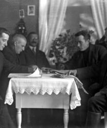 Tuurin Osuuskaupan Hakojärven sivumyymälän myymäläneuvosto. Vas. Sandra ja Kalle Metsälä, Vihtori Katajamäki, August Alkula, Juho Lamminaho ja Erkki Kallioniemi. Myymälä toimi Sandra ja Kalle Metsälän talossa 1921-1930 lähellä asemaa. Sitä kutsuttiin komerokaupaksi, koska siinä vain pieni komero, jossa oli kauppatavarat.