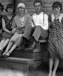 Keskellä Hilda (os. Isomäki) ja Lauri Virtanen, Isomäen sisarukset Hilja, Meeri ja Elli
