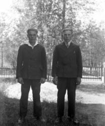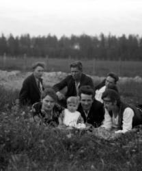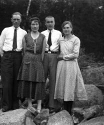 Vas. ed. Esteri Pennala, os. Lamminaho, Eino ja Elsa Lamminaho, takana oik. Juho ja Onni Lamminaho