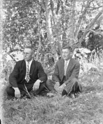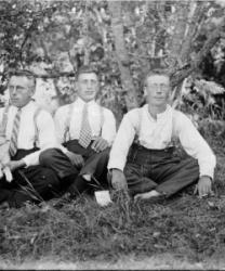 Toinen vas. Eino Istanmäki. 3. Arvo Tohni ja Jussi Kukkola, kuvattu Töysän kirkon luona, tapuli taustalla