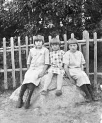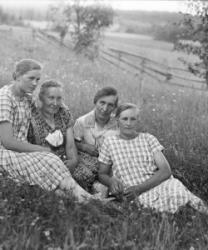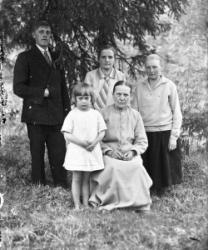 Edessä vas. Judit Fors, edessä toinen vasemmalta. Kerttu Fors, takana poika Pauli Rauhala, takana piilossa Yrjö Fors, edessä poika Risto Fors,