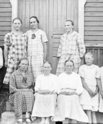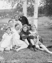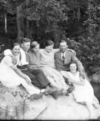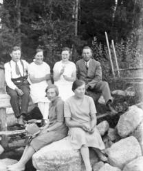 Takana vasemmalta Artturi Mäkiranta, Martta Rauhala, Sennu Mäkiranta, Kaarlo Rauhala, edessä Kerttu Forss, Hilda Mäkiranta.