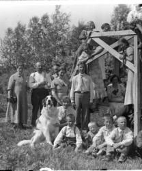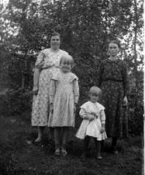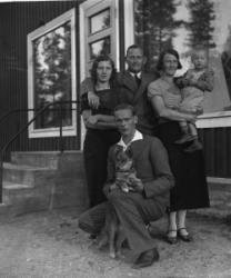 Vas. Lempi Toivola, Vihtori ja Iida Paavola, Aili Paavola, Eero Paavola, Hilkka Paavola (Ailin tytär), Eeva Paavola, Helli Paavola, Kaarina Paavola, Paavo Paavola kiikun päällä, kiikussa vas?, Martta Järvinen, Arvo Aho, Arvon vieressä?, Oskari Paavola kiikun takana, edessä Seppo-koira, Fanni Paavola, Mauno Paavola, Antti Toivola, Paavo Toivola, Sauli Paavola, Matti Paavola (Tarkiaisen Rauhan veli)