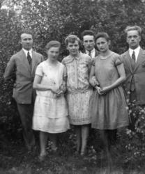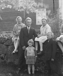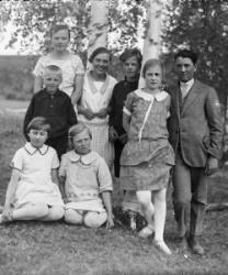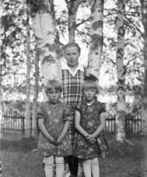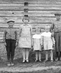 Olavi Holkko, Rauha Holkko (myöh. Hankaniemi), Anna-Liisa Holkko, Maija Holkko ja Matti Holkko tai toisin tunnistettu Olavi Holkko, Rauha Holkko (myöh. Hankaniemi), Maija Holkko (myöh. Heinonen), Kerttu Holkko (myöh. Kinnari) ja Oiva Hankaniemi.