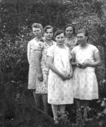 Rauha (myöh. Hankaniemi), Kerttu (myöh. Kinnari), Anna-Liisa (myöh. Katajamäki), Maija (myöh. Heinonen) ja tak. Irja Holkko (myöh. Riiho).