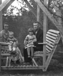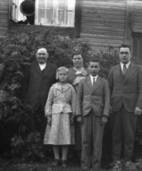 Takana vas. Arvo Mäenniemi, Aino Myllykoski, Elli Mäenniemi, Martta Myllykoski, alarivi Terho Mäenniemi, Eira Alaniemi, sylissä Eila Rankila, Martti Rankila, Matti Mäenniemi, Saima Mäenniemi(myöh. Savela) ja Jouko Savela, edessä Mirja Alaniemi.