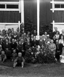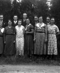Paavolan Pihalla. Kuvasta löytyy: Kalle ka Hilda Paavola, Salomon ja Elli Paavola, Rauha Paavola, Fanni Paavola, Arvo Aho, Hilda ja Kyllikki Suomela, Iida Paavola, lapset Hellin Kaarina Eeva Eero sauli ja Paavo Paavola, Martta Järvinen Vilma Ojala, Liisa ja Anni Herrala, Helmi ja Sirkka Kanerva