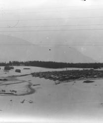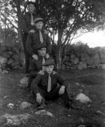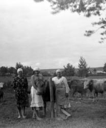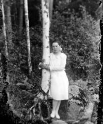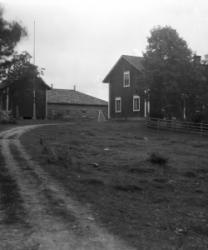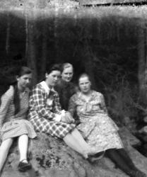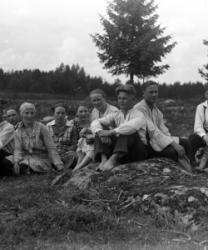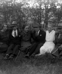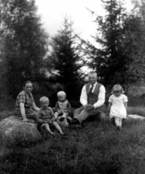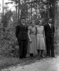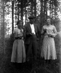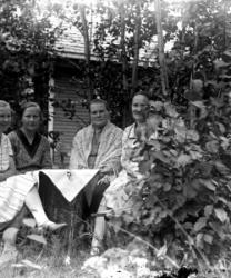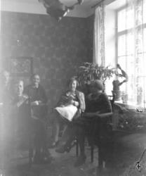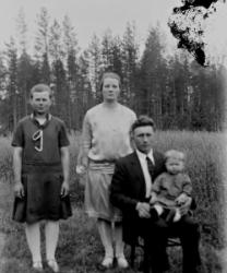 Opettaja Sally Taimion (os. Lehtonen) vanhemmat (takana vasemmalla). Töysän aseman koululla, opettajan asunnolla.