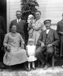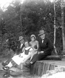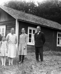 Vas. Heikki Kuivasmäki, tytär Kerttu, Heikin sisiko Fiinu Kuivasmäki, Lyydia ja Väinö Kontoniemi. Talo kirkolla Suomelan takana, omistaja ompelija Hilja Kuivasmäki.