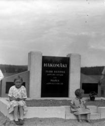 Kustaa Hakomäki perheensä kanssa vanhempiensa haudalla