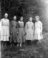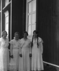 Rippityttöjä Töysän vanhan seurakuntatalon nurkalla, ent. renkitupa pappilan vieressä