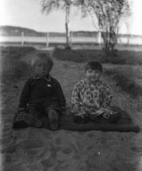 Rippilapsia Töysän kirkon nurkalla