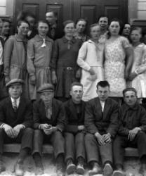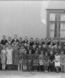 Töysän kirkonkylän koulun oppilaita, s. 1921-25. Opettajat Juho Hakala, Aino Åkerman ja ?