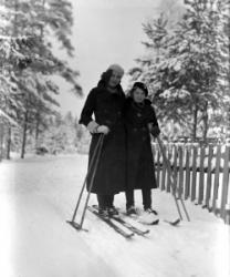 Naiset hiihtämässä