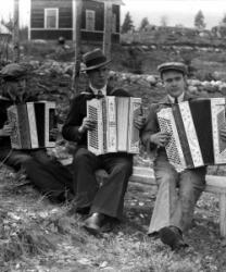 Haitarinsoittajat ennen sotia Hakojärvellä, vas. Arvo Kotiranta, Armas Haveri ja Aimo Ollikainen