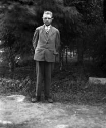 Rippikoululaisia Töysän kirkon edessä, vas. kirkkoherra Väinö Tuomola
